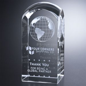 This multi-dimensional pyramid of flawless blue and clear crystal make a bold statement. The Apogee Award features clear crystal and streaming blue highlights, topped with a brilliant blue peak.